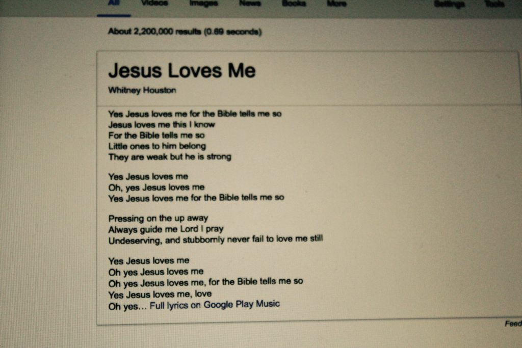 - A tired Christian’s definition: Used in a lot of the Sunday School songs. Preachers say that a lot too.